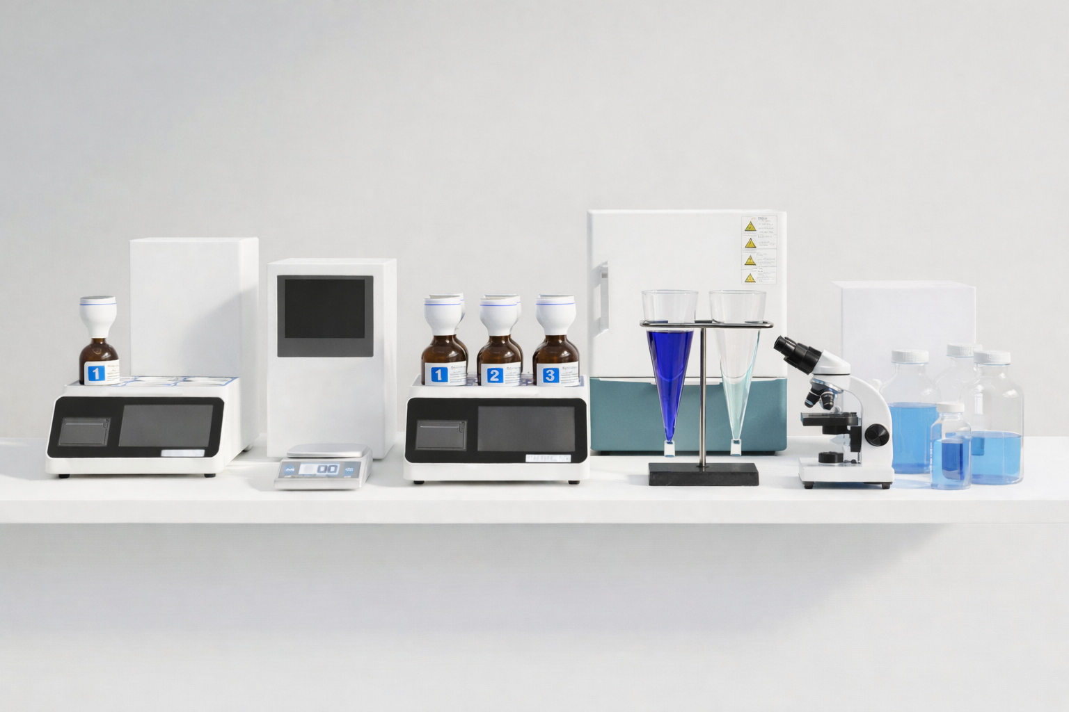 - Precision weighing balances, portable multimeters, and microscopes for routine operational checks